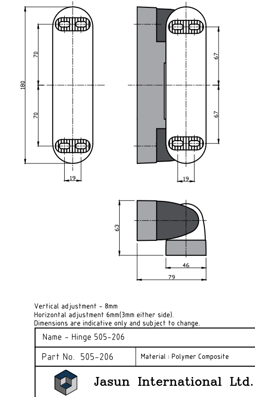 Leaf / Door can be adjusted 6mm(3mm either side) horizontally.